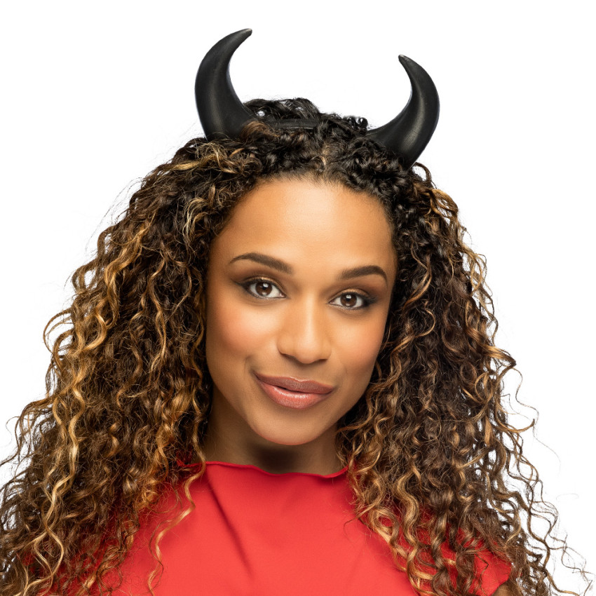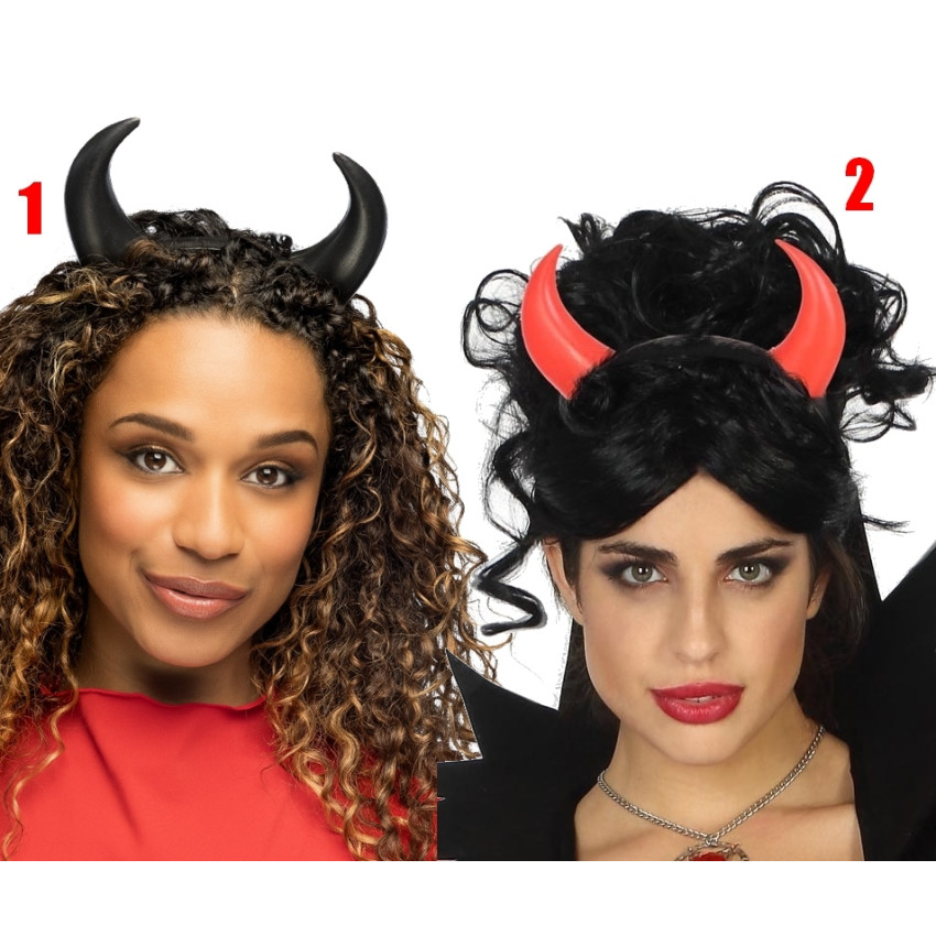 Les cornes sont fixées à l'aide d'un serre-tête.
