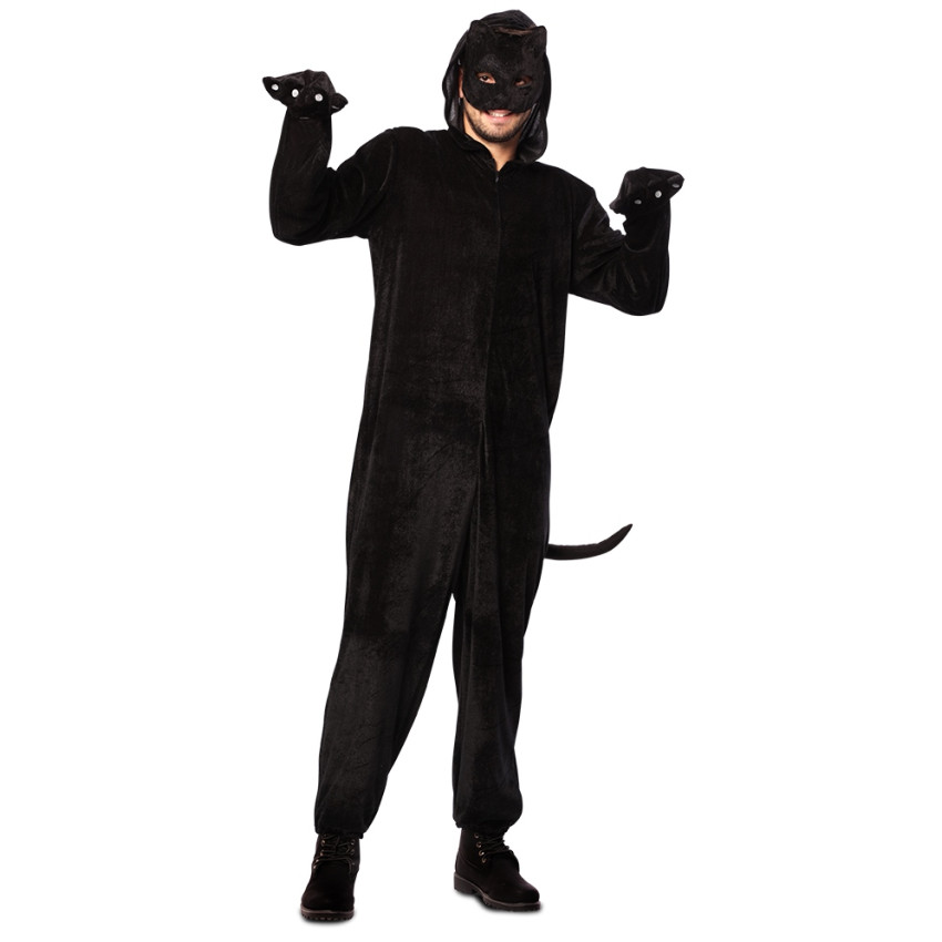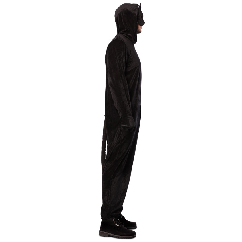 - Une combinaison de chat noir avec capuche intégrée et queue de chat