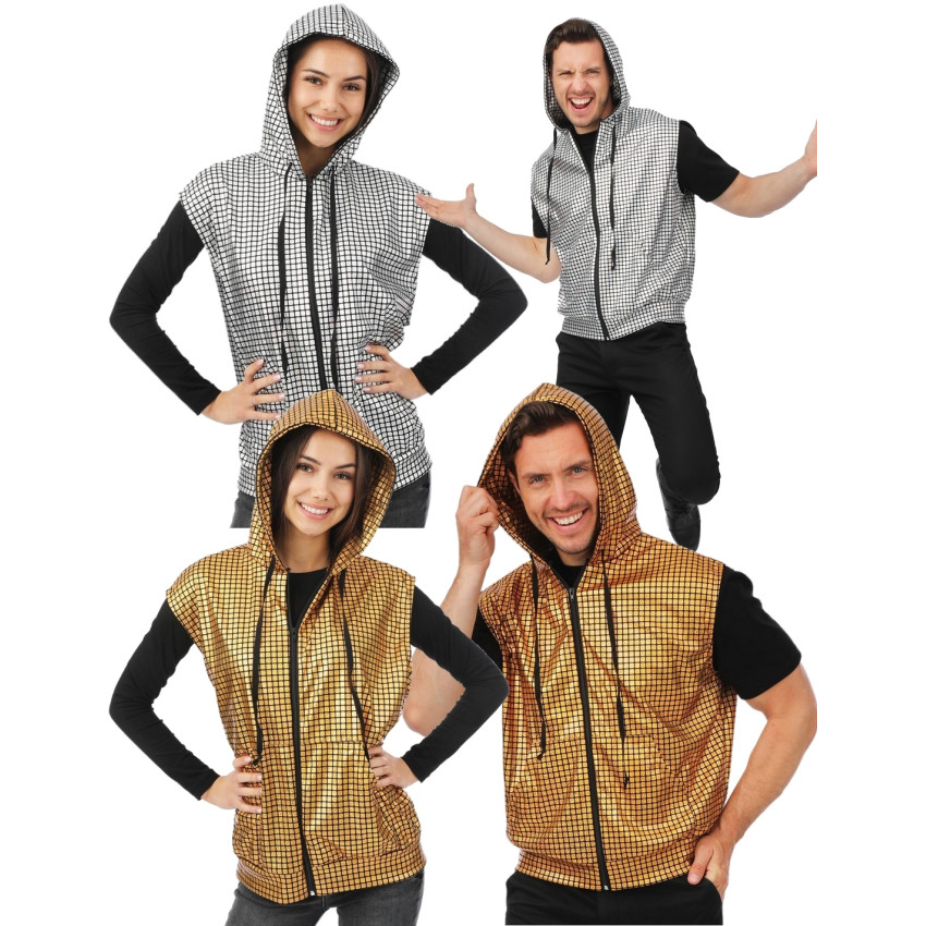 Déguisement Gilet Métallisé Capuche - 2 Coloris au Choix