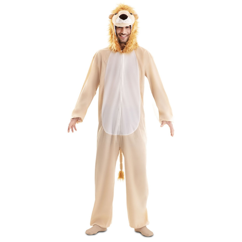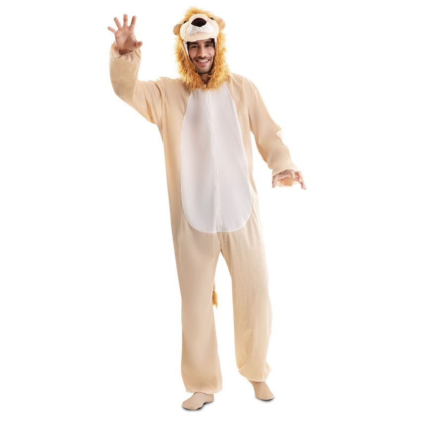 - Une combinaison de lion avec capuche tête de lion et sa crinière, ainsi qu'une queue de lion.