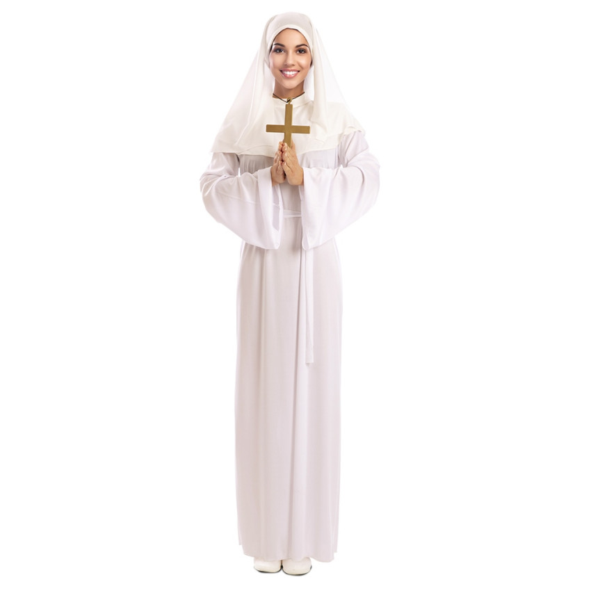 Ce costume de nonne blanche pour femme est une taille unique femme : M/L.