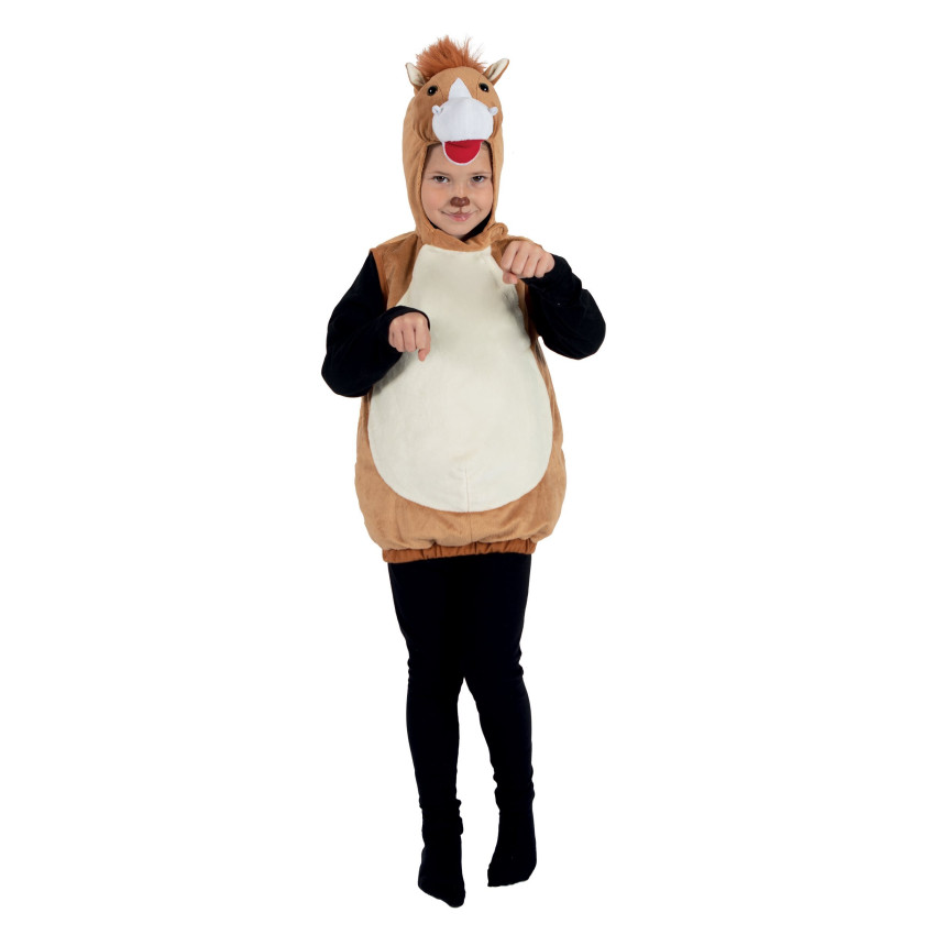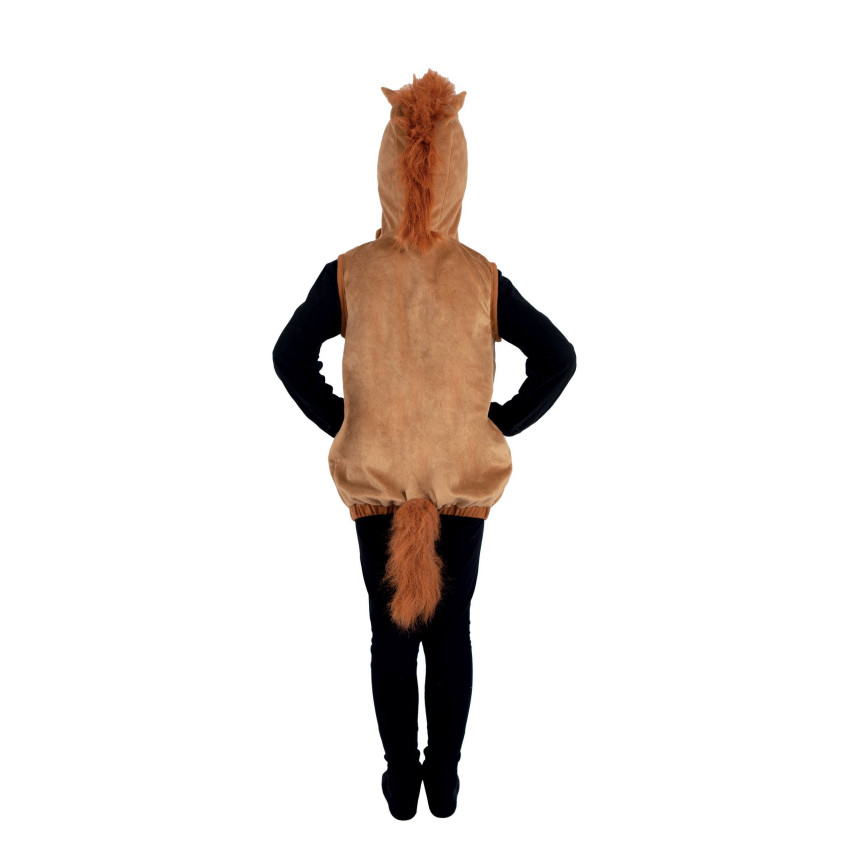 - Une tunique avec capuche tête de de cheval et queue de cheval.