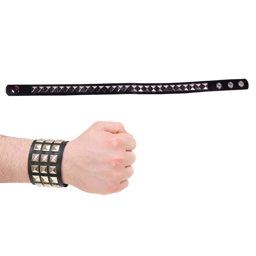 Le collier et le bracelet clouté sont en simili cuir et s'attachent à l'aide de pressions.