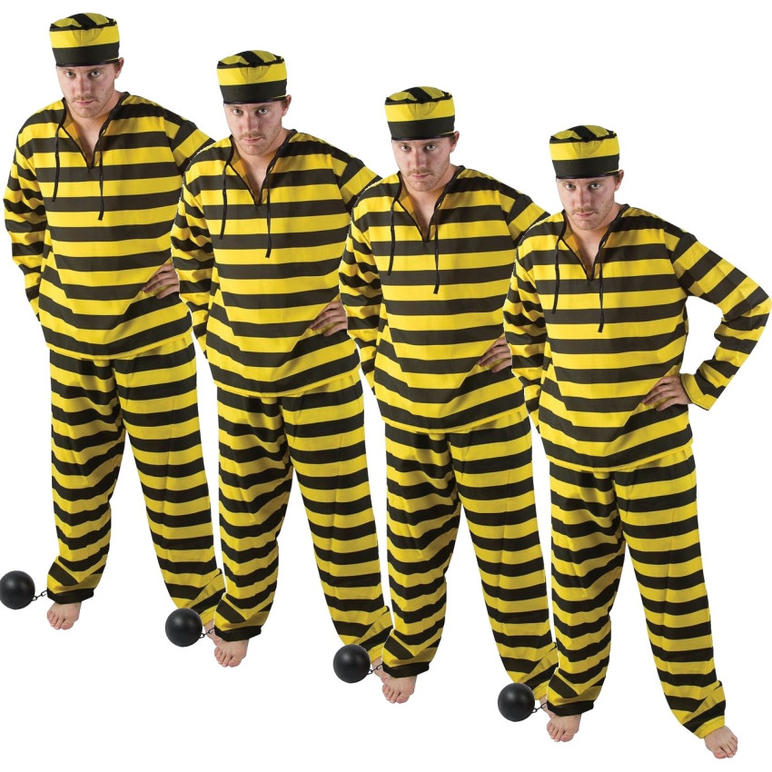 Lot de 4 Déguisements Prisonnier Jaune