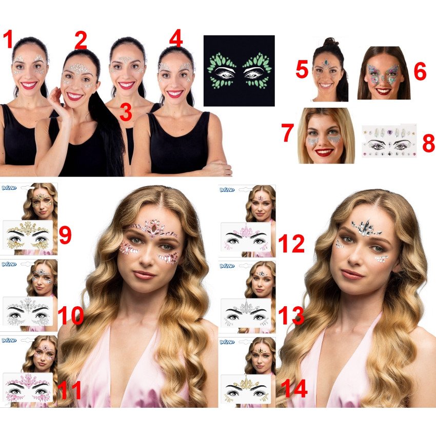 Set comprenant plusieurs strass autocollants pour la peau.